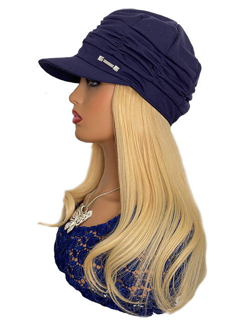 Chic Chemotherapy Hat With Straight Blonde Hair Attached