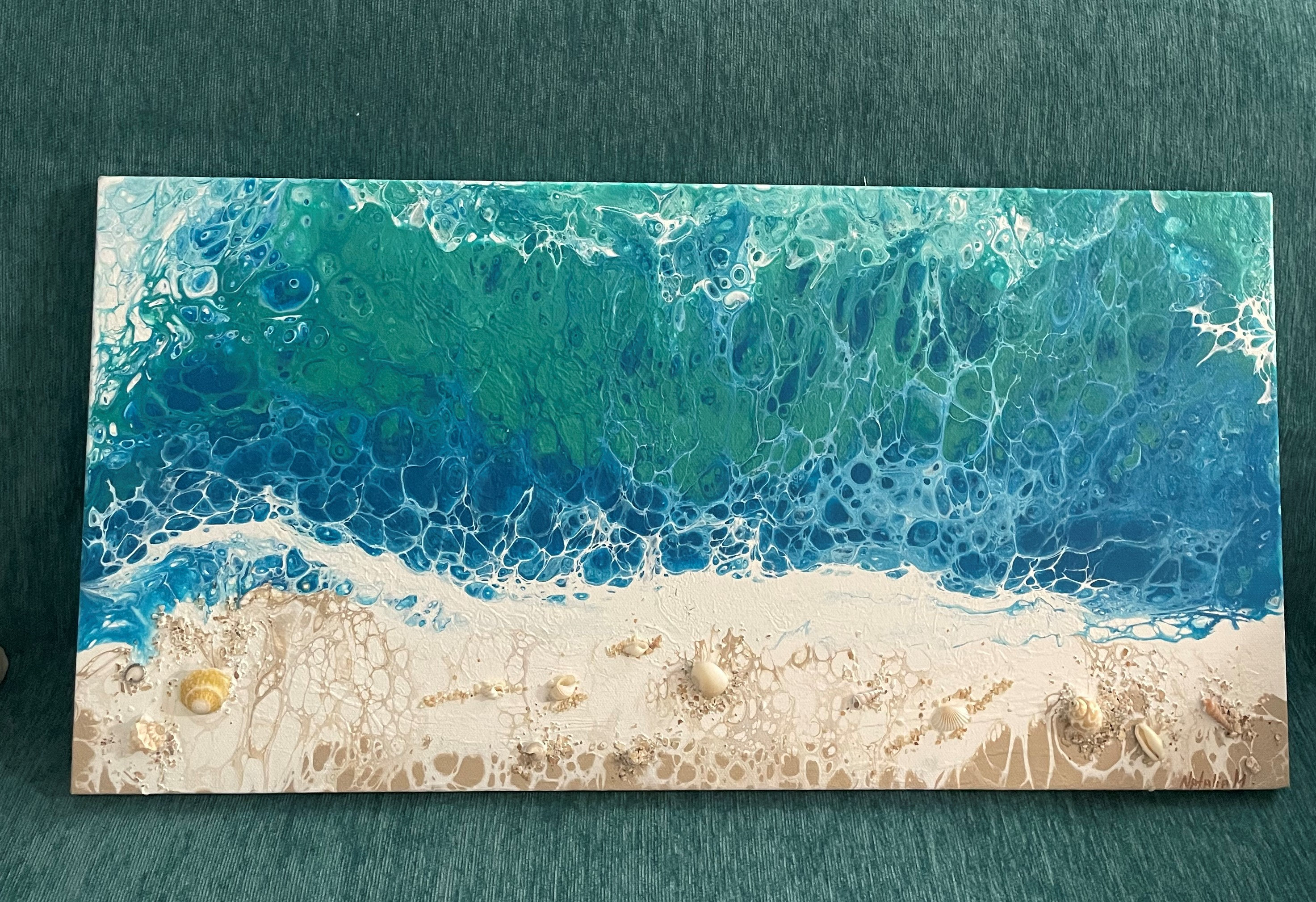 Marine Painting With Shells Canvas Size 24x12 Inches Etsy